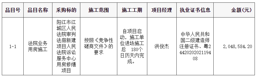 合同包1(陽江市江城區(qū)人民法院審判法庭新建項目人民法院訴訟服務中心用房修繕項目):