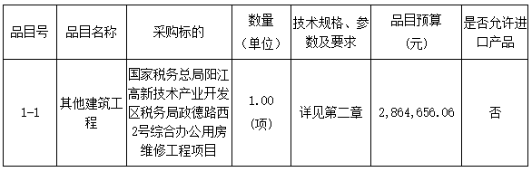 采購(gòu)項(xiàng)目名稱(chēng):國(guó)家稅務(wù)總局陽(yáng)江高新技術(shù)產(chǎn)業(yè)開(kāi)發(fā)區(qū)稅務(wù)局政德路西2號(hào)綜合辦公用房維修工程項(xiàng)目