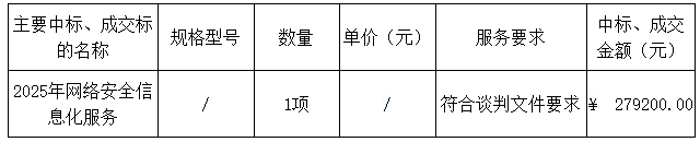 廣東業(yè)信采購招標(biāo)有限公司受陽西縣人民法院的委托,于2025年9月16日就陽西縣人民法院2025年網(wǎng)絡(luò)安全信息化服務(wù)項(xiàng)目(項(xiàng)目編號(hào):YXCG-20250901)進(jìn)行談判采購,現(xiàn)將本次采購結(jié)果公告如下: