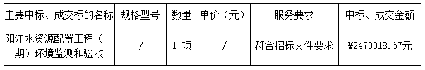 二、采購(gòu)項(xiàng)目名稱:陽(yáng)江水資源配置工程(一期)環(huán)境監(jiān)測(cè)和驗(yàn)收