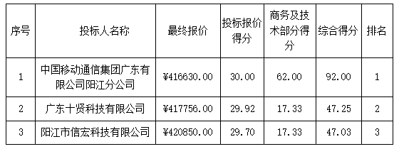 成交供應商名稱:中國移動通信集團廣東有限公司陽江分公司